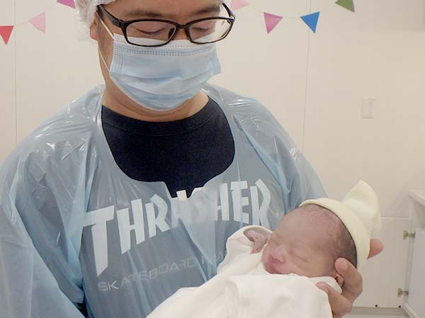 赤ちゃん誕生後、陣痛分娩室で約2時間母子一緒にしばらく過ごします。